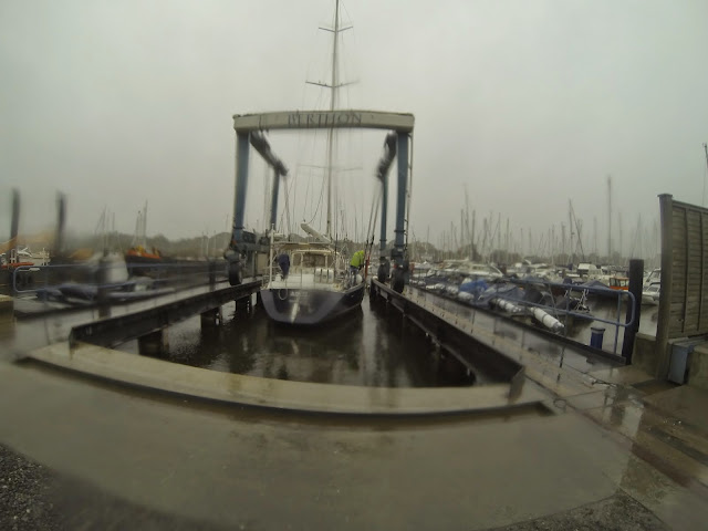 And so the dream closes in heavy rain, one of the very few occasions where we are wearing waterproofs, and as the hull is lifted we marvel at the condition of our 16 anodes. Very little erosion.